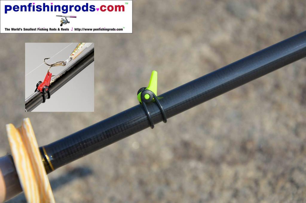The Micro Hook Keeper is easier to install than a traditional hook keeper and can be repositioned as high up or low as you like. Our handy fold away design allows you to position it in stealth mode, and it snaps into an upright position quick with cam-lock action ready to use. It comes in highly visible bright neon chartreuse so it's easy to locate in the dark quickly. HOOK KEEPER ARE NOT TO BE USED WITH PEN FISHING RODS. Hook keepers are for use with regular one or two piece fishing rods. Get yours today.